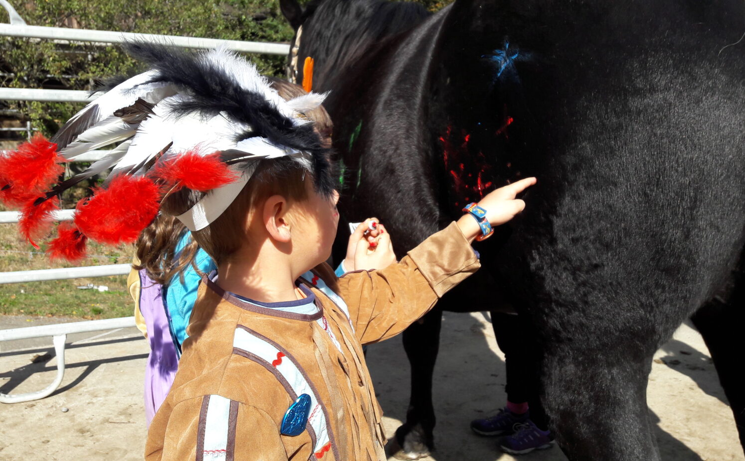 Zum Indianergeburtstag auf dem Berghof üben wir gemeinsam Lasso werfen, Pfeil & Bogen schiessen und Hufeisenzielwurf. Alle Kinder bekommen die gleiche Indianerbemalung - wir gehören ja alle zum gleichen Stamm! Gemeinsam bemalen wir nach dem putzen unsere Pferde und reiten stolz wie die Indianer! Wer Indianerkleider hat, darf diese gern mitbringen.
