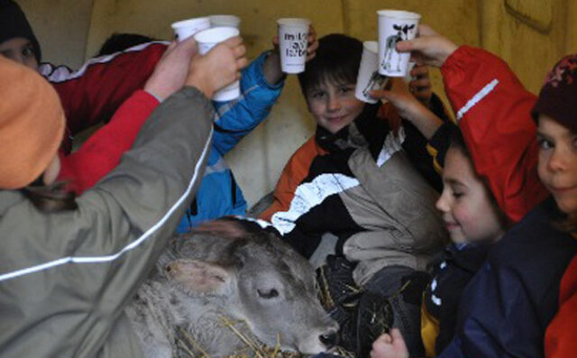 ---> gern darf noch die Zusatzstunde / halbe Stunde dazugebucht werden, so können die Kinder noch die "Büffel" im Stall anschauen und Kälbli füttern gehen, inkl. melken...